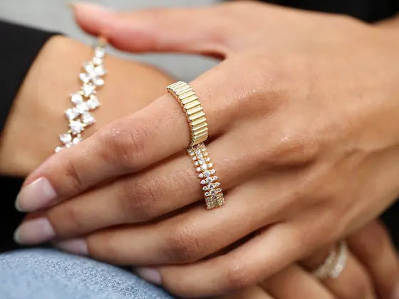 Introducing the 'Flora Corona Sparkling Ring', an exquisite marriage of geometry and nature, encapsulating the essence of minimalist jewellery with a flourish. This distinctive piece features a harmonious composition of circular patterns, each encasing a radiant cluster of gemstone accents that glimmer with every movement.